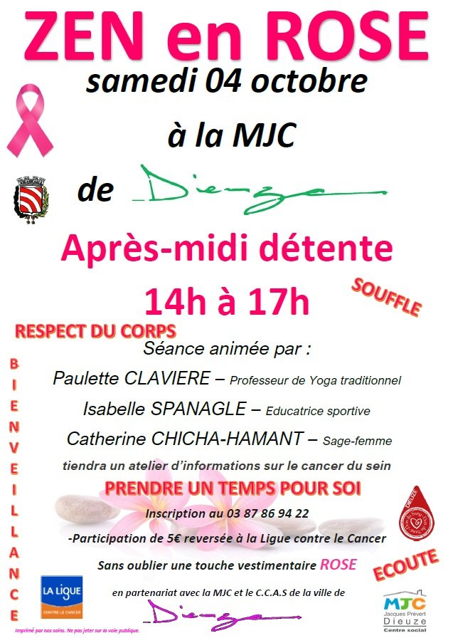 Le samedi 4 octobre de 14h à 17h, après-midi détente avec un atelier d'informations sur le cancer du sein.