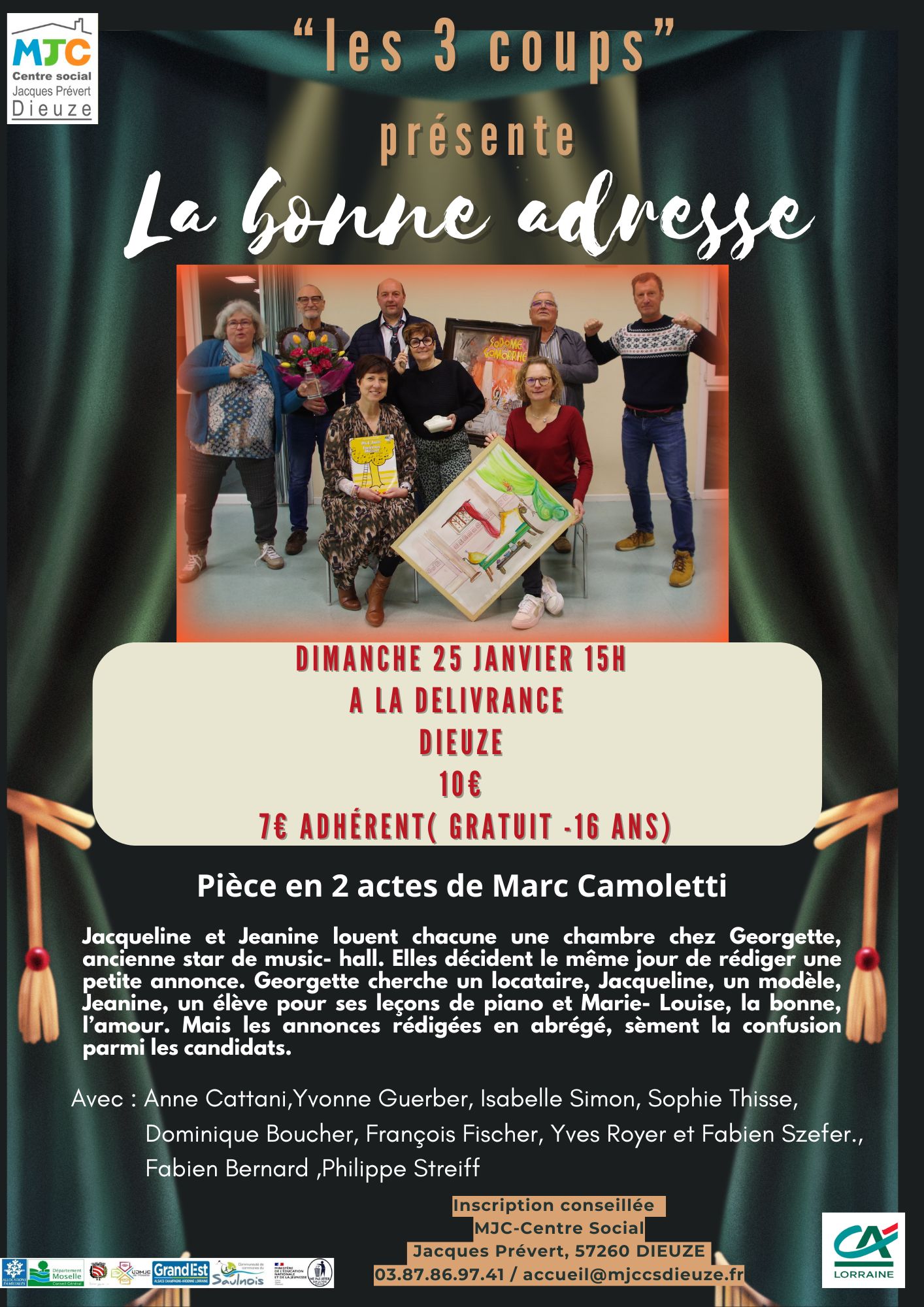 25 janv. Lieu La DélivranceLes Salines Royales57260 DIEUZE À 15h Partager sur FacebookPartager sur TwitterPartager par email Cliquez pour activer